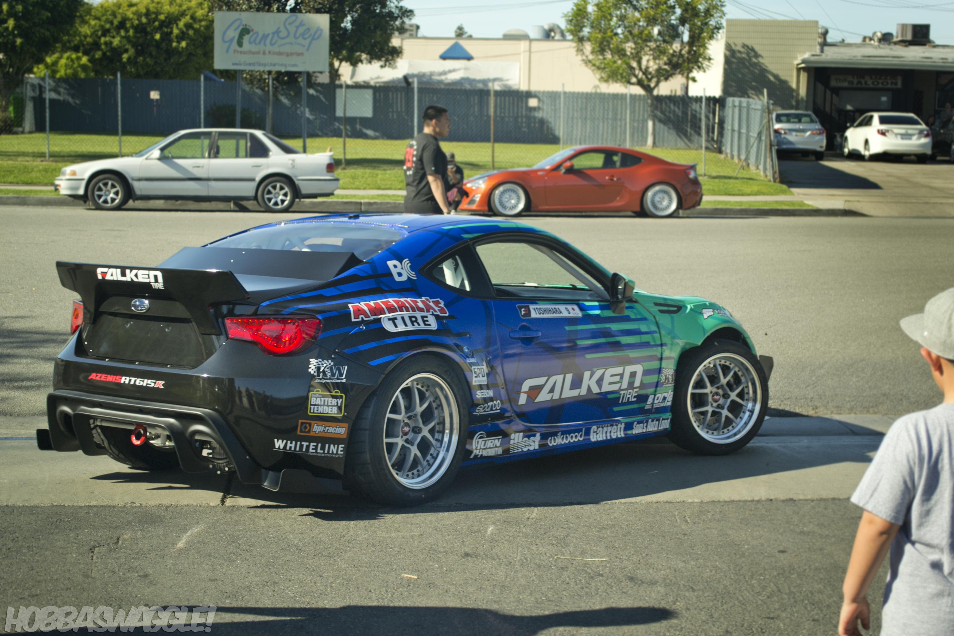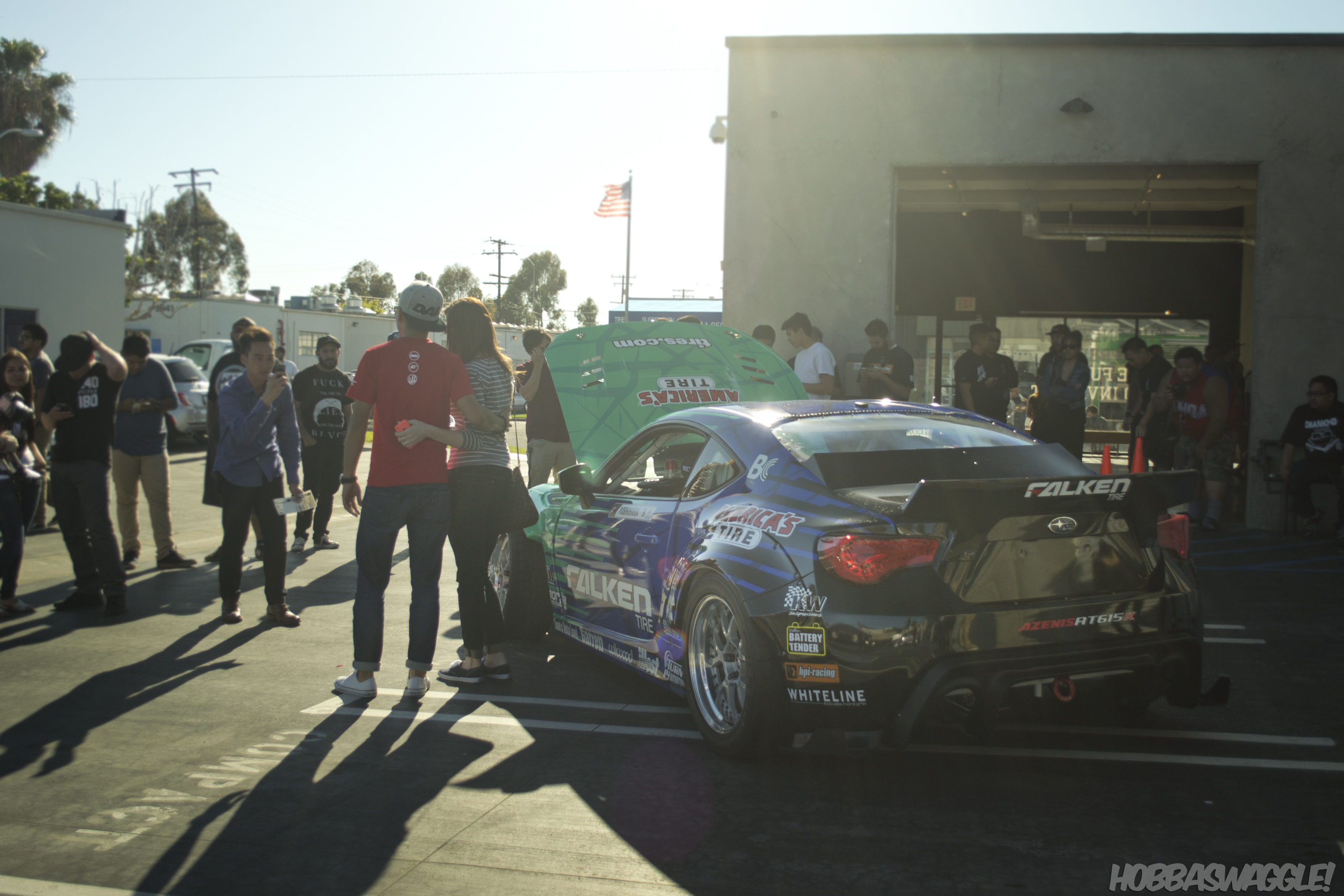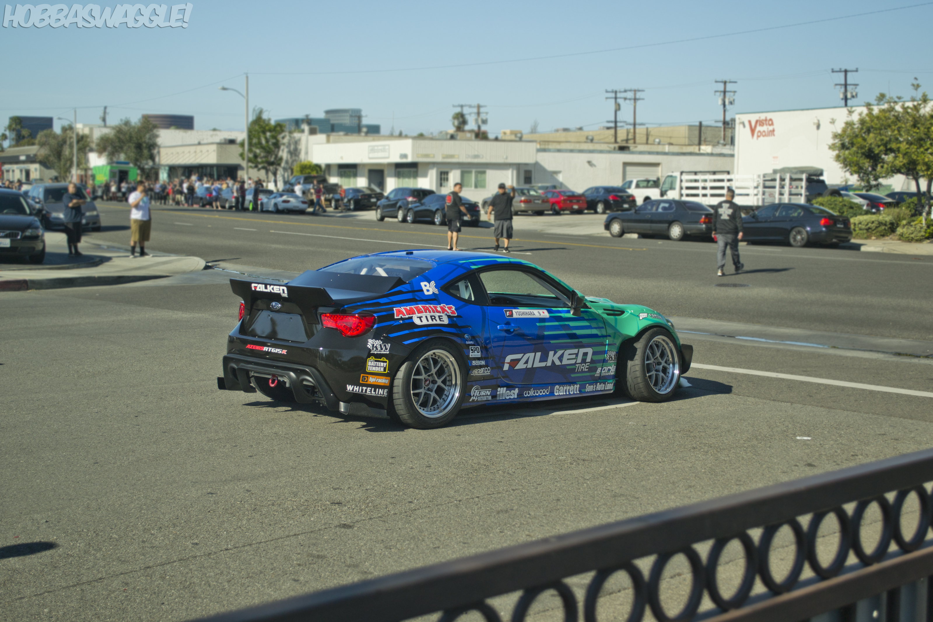 Any event over at the Costa Mesta Fatlace paddock is sure to draw a decent crowd, and the unveiling of Dai Yoshihara’s new BRZ for the 2014 Formula Drift season did not disappoint. But I’ll get to the other local hard-parkers in a later post, for now let’s focus on the main event: Dai’s spankin’ new Rocket Bunny-clad Falken BRZ!