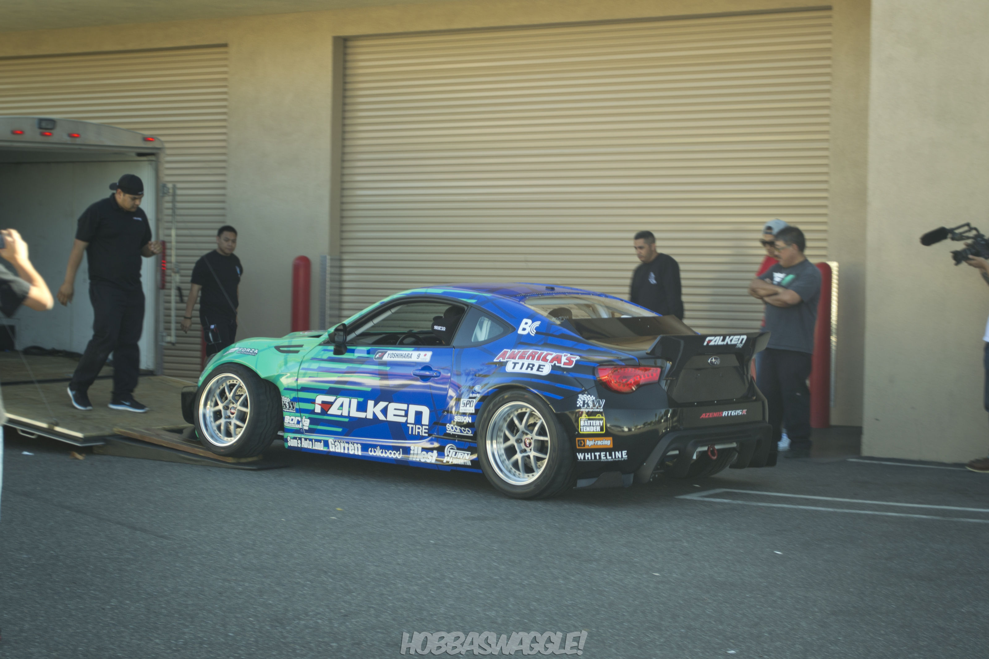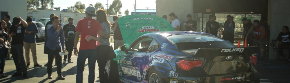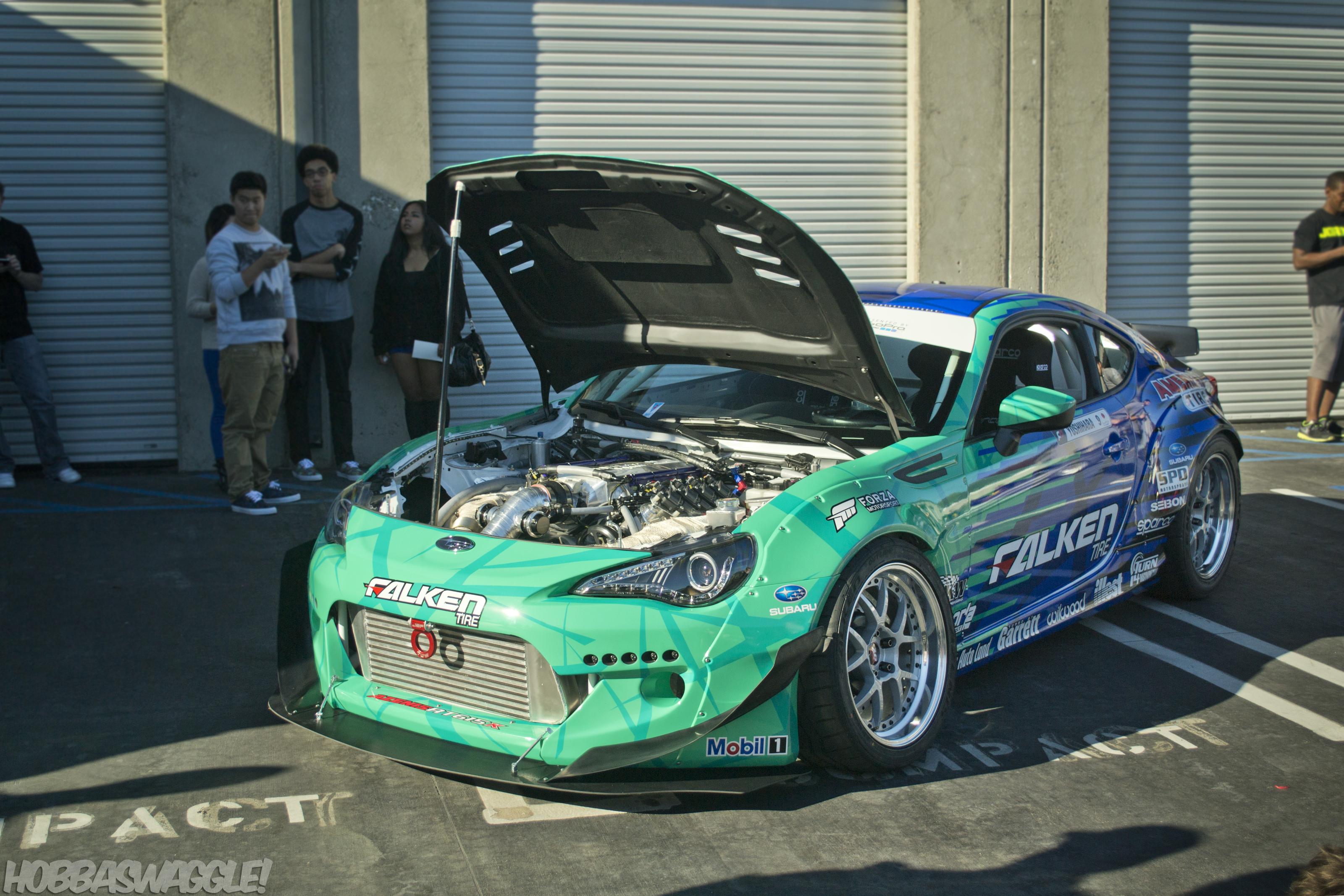Any event over at the Costa Mesta Fatlace paddock is sure to draw a decent crowd, and the unveiling of Dai Yoshihara’s new BRZ for the 2014 Formula Drift season did not disappoint. But I’ll get to the other local hard-parkers in a later post, for now let’s focus on the main event: Dai’s spankin’ new Rocket Bunny-clad Falken BRZ!