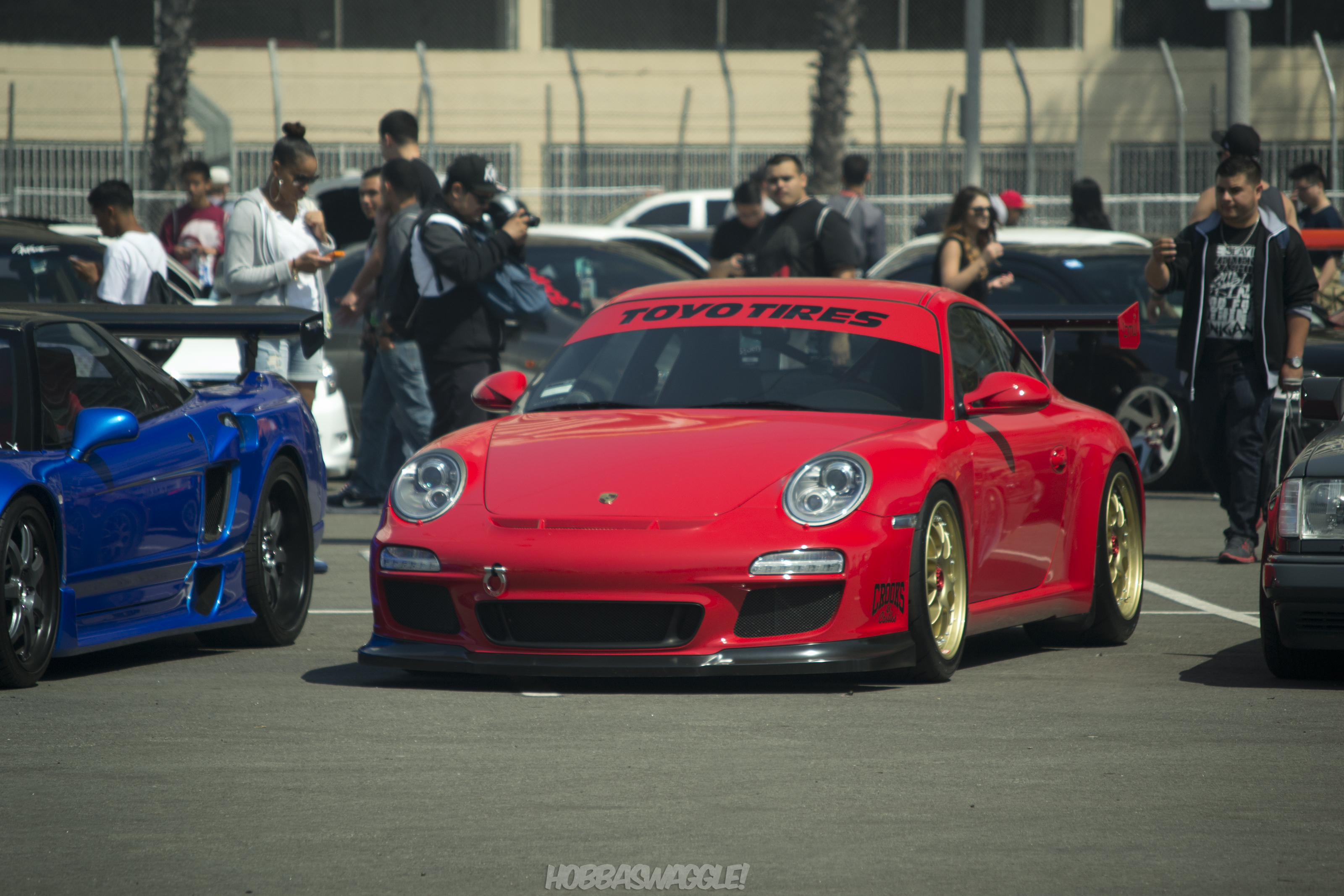 Day two of FDLB hosted the Main Event of the Streets of Long Beach as well as a selection of slammed suspensions and low offsets, visitors were greeted with this bright red Porsche 997.2 GT3 hovering inches from the pavement.