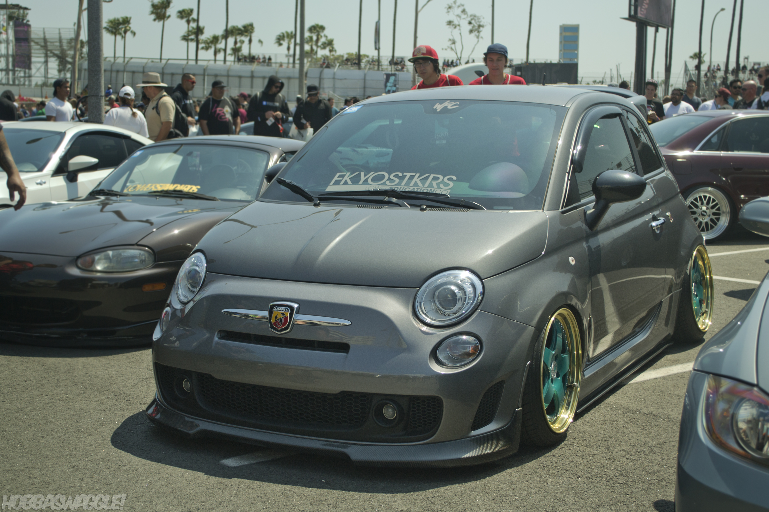 Case in point once again with this little Fiat 500, this time on M240’s and a custom green/gold color combo.