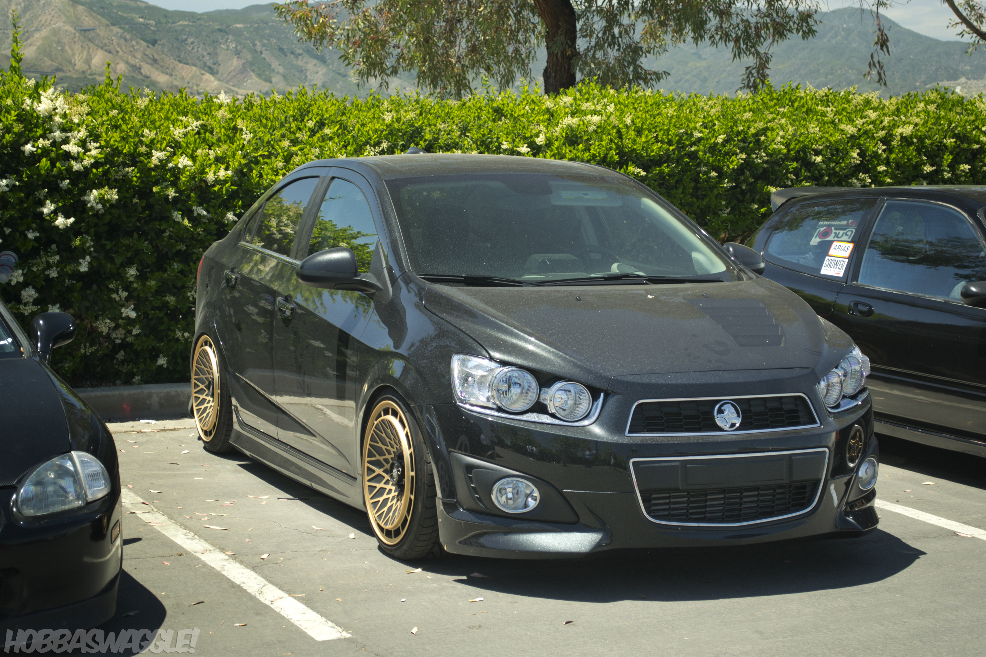Another cool parking lot find on the way in was this Chevy Sonic masquerading as a Holden Barina slammed over a set of Mtechnica Turbos.