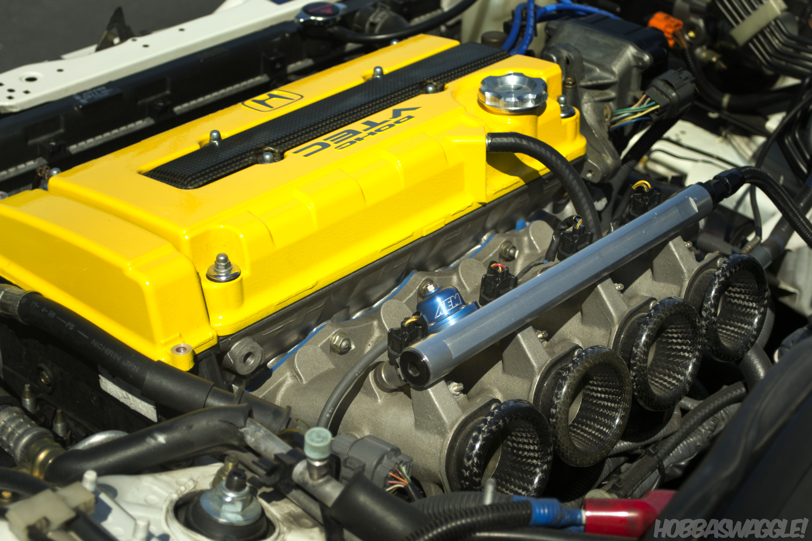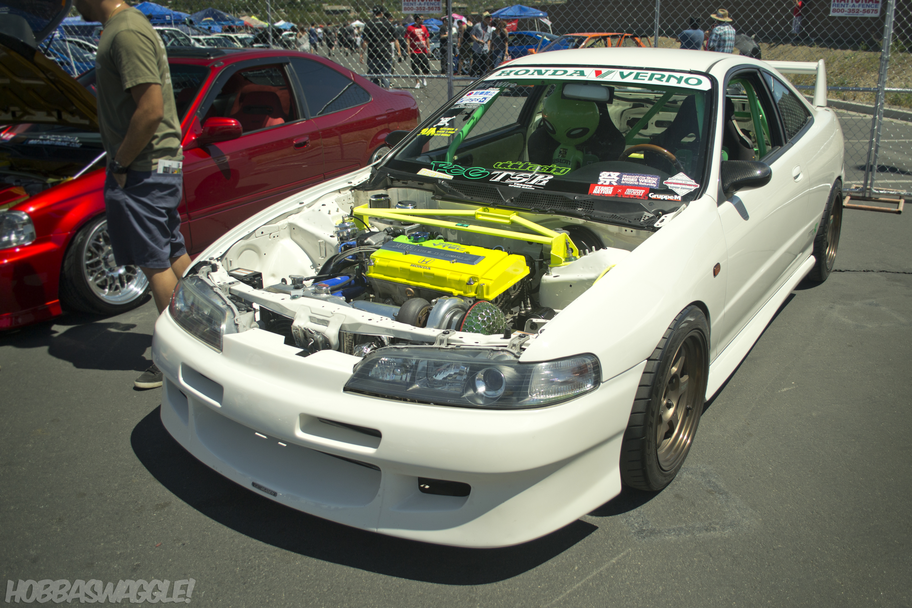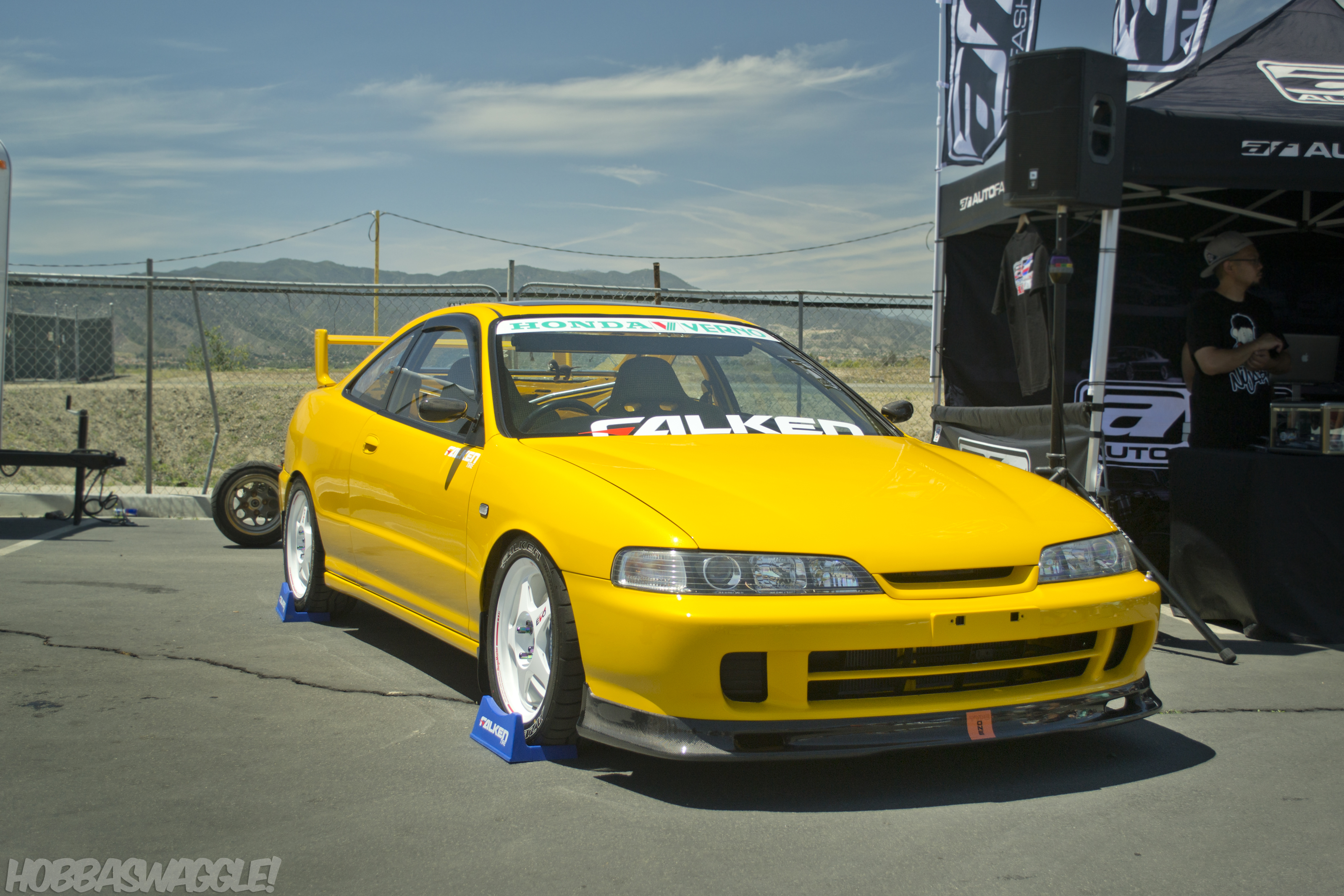 Immediately after entering I was greeted by this archetypal example of the Honda/Acura Integra. JDM ITR front-end conversion, Regamaster Evos, Mugen type 2 spoiler, Spoon front lip, and flawless Phoenix Yellow paint make this a standard other Integras should be measured by.