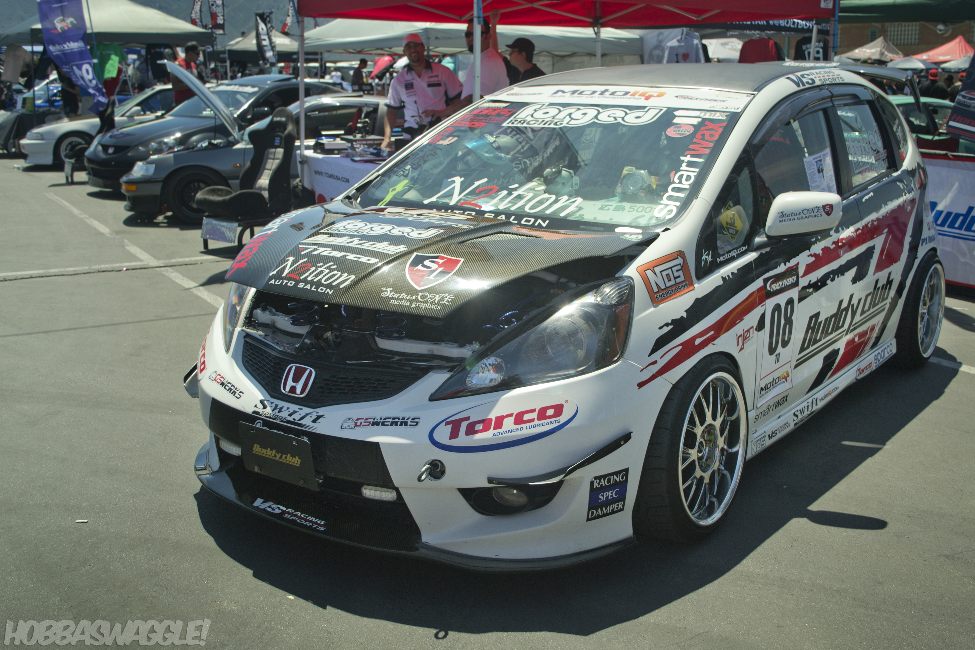 Being a Fit owner, I’m often overly-critical of most of the examples I see but Note’s ’09 GE was basically the first second-gen Fit to get the track treatment in the US. He does not mess around and has kitted it out with essentially everything Buddy Club makes for the chassis, making it a surprisingly potent track machine.