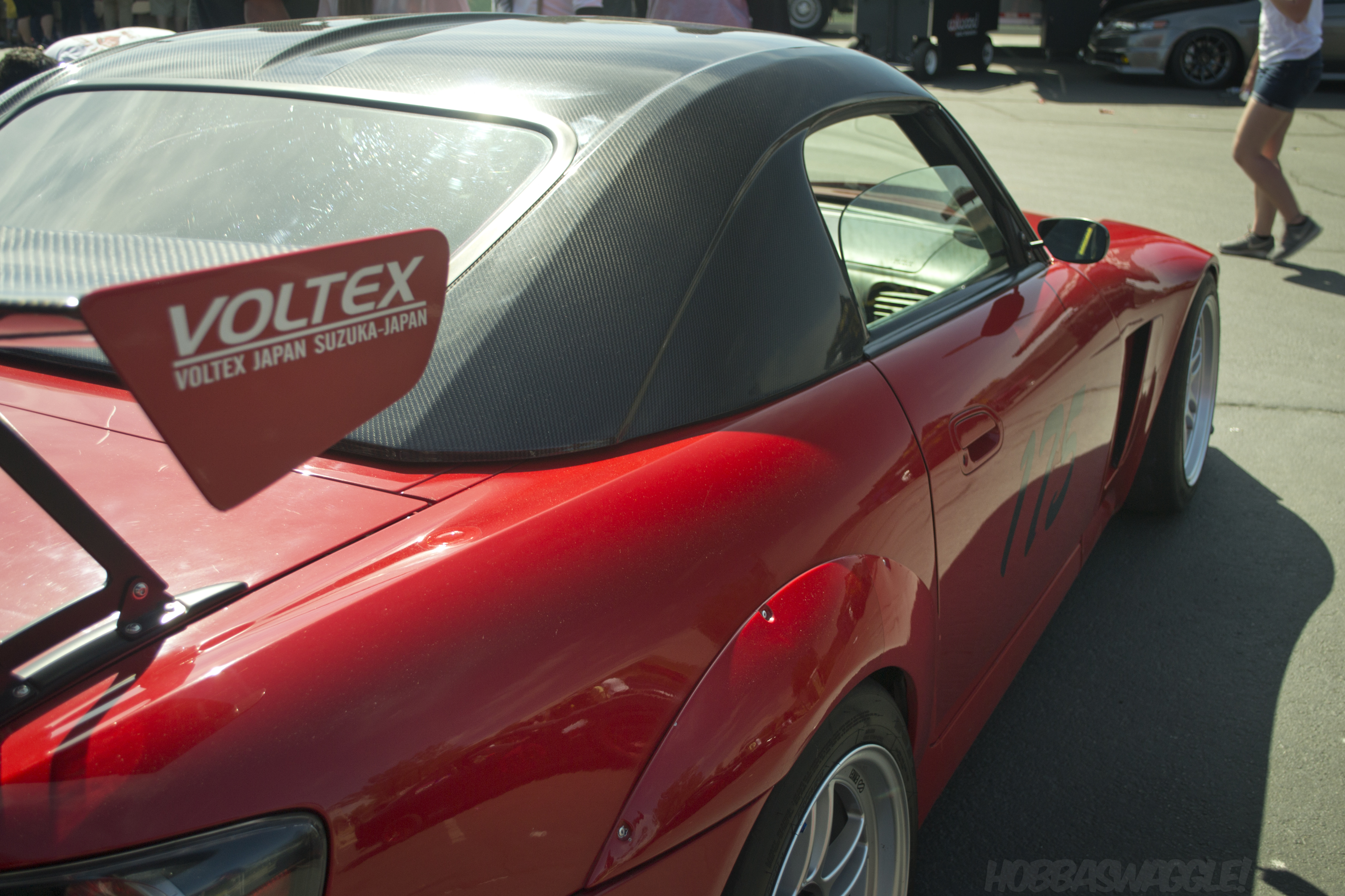 ASM S2000 prepped for some corner-munching fun, offset airflow holes in the front bumper and the painted sides on the Voltex wing add some cool character.
