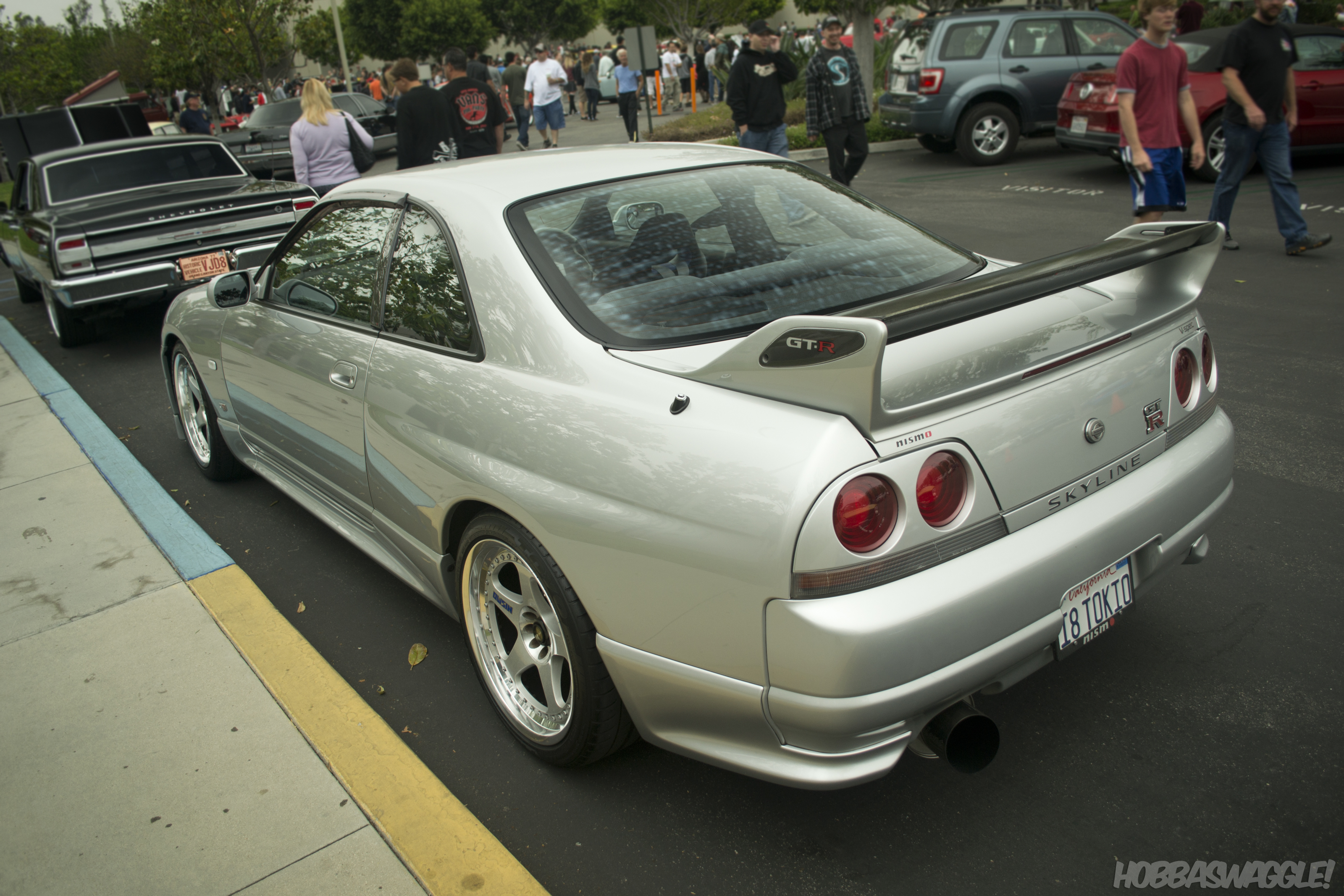 Eventually the tide of people comically squeezed into teeny cars ceased, I wiped a joyful tear from my eye, and moved on to the secondary lot to check out this immaculate R33 GT-R Skyline on Nismo LM-GT1 wheels.
